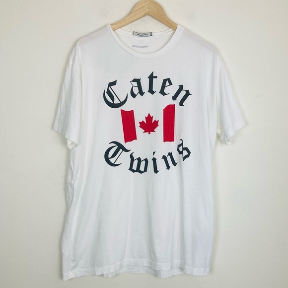 DSQUARED2 white Caten Twins maple leafs Canadian flag tee shirt XL