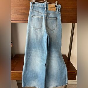 Chic light blue jeans with a wide-leg design. Perfect for a trendy look.