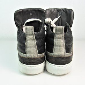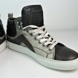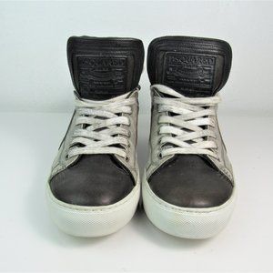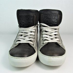 DSQUARED2 Men's Size 42 or 9 Factory Distressed White /Gray/ Brown Leather Hi-Top Sneakers, Luxury Designer Made in Italy | Excellent Pre-Owned Condition, Worn Once - Similar Style to Golden Goose