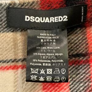DSQUARED2 Red Black White Plaid Wool Blend Fringe Scarf