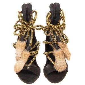 Brand new with box DSquared2 Leather Strappy Sandals with rabbit fur tassels. These shoes include the dust bag and box, as pictured.