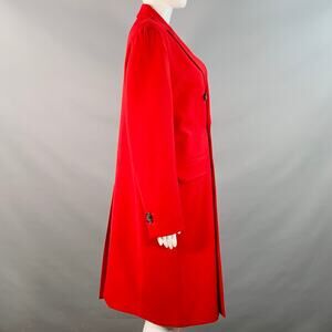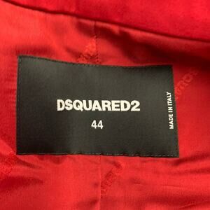 DSQUARED2 coat in a red wool blend fabric featuring a double breasted style, peak lapel, and button closure. Made in Italy.Excellent Pre-Owned Condition.Marked: IT 44Measurements:Shoulder: 16 in.Bust: 41 in.Sleeve: 24.5 in.Length: 38.5 in.