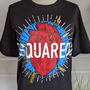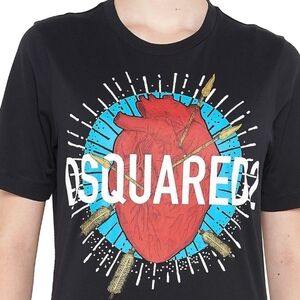DSQUARED2 Tee Anatomical Heart Graphics Short Sleeve Rounded Collar Black M NWT