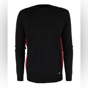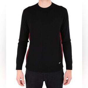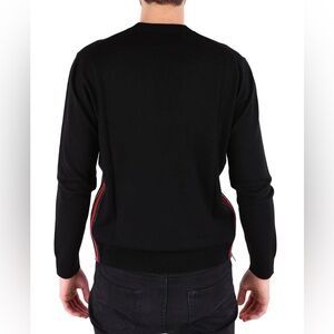 DSQUARED2. The Side Zip Wool Black Crewneck Pullover Red Side Bands