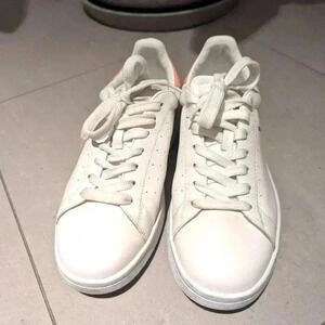 DSQUARED2 White & Pink Leather Lace Up Sneakers w Rubber Sole - size 39 like new