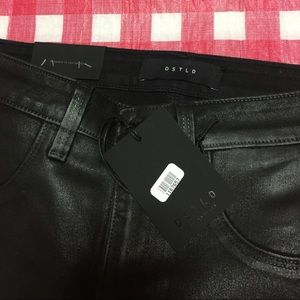 Brand new pants.Waist is 27 and instead is 28. Fake front pockets. Coated finish offers soft sheen with a powdery-soft feel. Super stretchy.77% Cotton, 21% Polyester, 2% Lycra. Easy to match with everything. Sneakers or high heels both look great with it! Feel free to make me an offer! 😊
