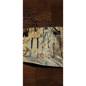 Large Capacity fabric purse lightweight with zippered closure interior zipper pocket double 12" chain carry straps 20" length 12.5 highth 5" wide