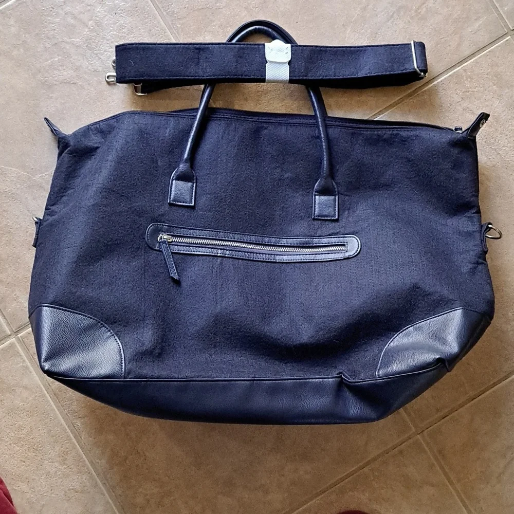 NWOT.Strap still wrapped.Huge Weekend Bag.Blue Felt/Faux Leather.NEW.NEVER USED...Yes.Really🚩