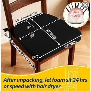 D-Shaped Chair Cushions, 2" Thick Dining Chair Pads with Ties and Removable, Machine-Washable Cover, 17" x 16", Set of 2, Black