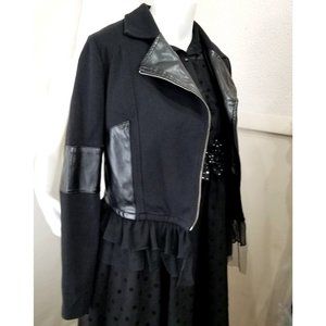 • Moto Jacket has Faux Leather and Poly Blend details, with Zipper details