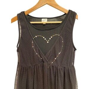 D-Signed Disney Black Mesh Metallic Heart Sleeveless Stretch Children's Dress XL