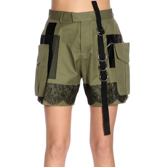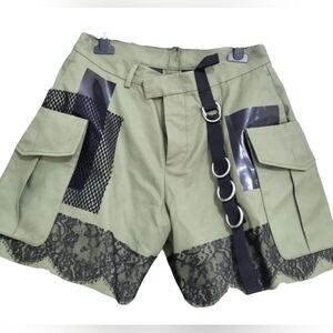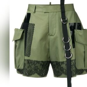 DSquared2 Military Green Cargo Lace Mesh Ring Baggy Pocket Streetwear Shorts