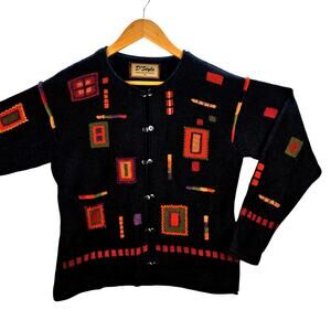 D'Stylo Womens L Blue 100% Wool Colorblock Cardigan Sweater Button Vtg Geometric