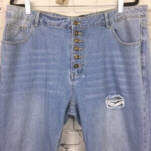 DT Jeans Women's Lightwash Distressed Button Fly High Rise Blue Jeans Size 2XL
