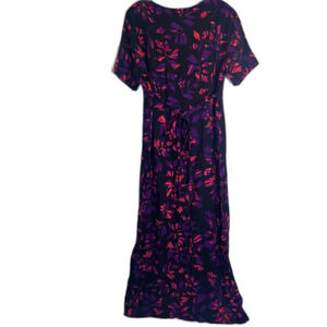 DUA Direct from Bali Purple Abstract Short Sleeve Tie Waist Long Dress Size M/L