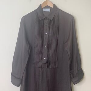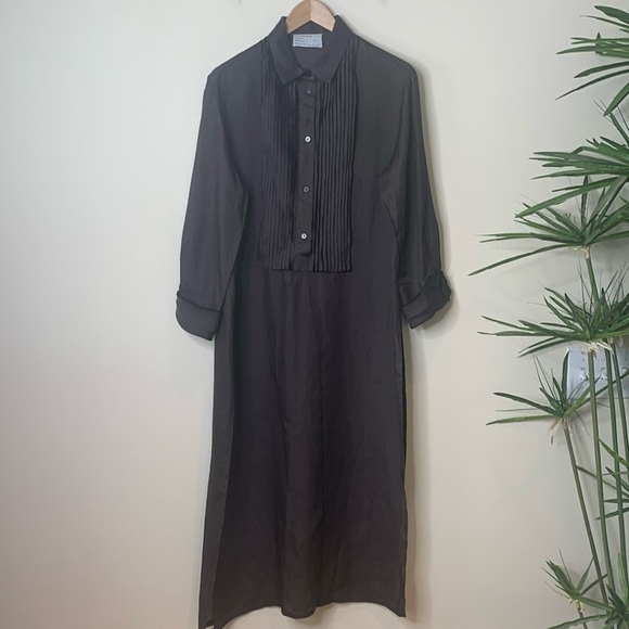 DUŠAN Brown 100% Bamboo Lightweight Oversized Double Sided Slit Semi Sheer Maxi Shirt Dress in Size Large made in Italy