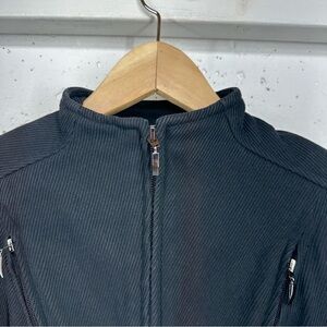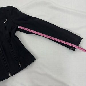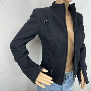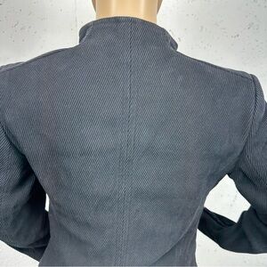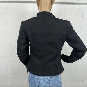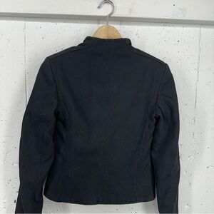DUBUC Size 4 Black Ribbed Fitted Jacket. There is some fading besides that in good preowned condition runs small measurements in photos.