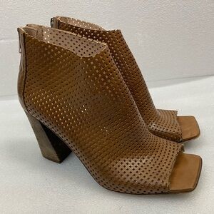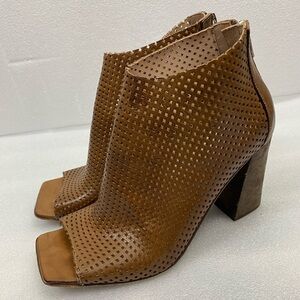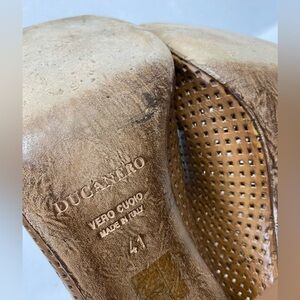 DUCANERO Leather Square Toe Chucky Heel Y2K Trendy Perforated Cocktail Prom Wedding Guest Event Brown Neutral Boho Festival Laser Cut Party Shoes EU 41 US 10
