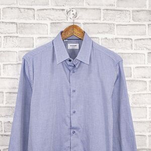 DUCHAMP London Tailored Fit Button up Shirt blue geo Men's size 16 Large