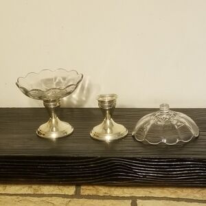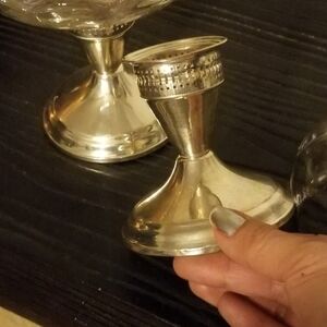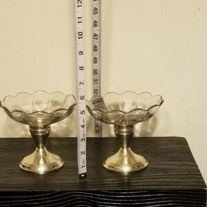 good condition, no chips, sterling needs polishing" Duchin Creation, crystal/sterling bowls, lot of 2. Weighted sterling base under crystal bowl. "Duchin Creation Sterling Weighted" appears on the bottom of each.