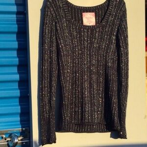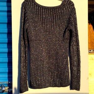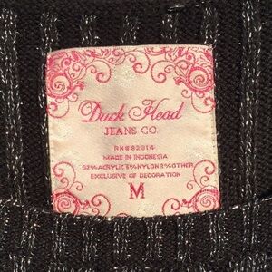 DUCK HEAD BLACK & SHIMMERING SILVER LONG SLEEVE SCOOP NECK SWEATER SIZE MEDIUM
