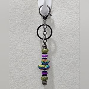 NEW, Duck keychain in iridescent black and green glitter beads, with gunmetal finish.