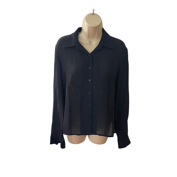 Elevate your wardrobe with this elegant black blouse by Due Per Due for HSN. Made from 100% silk, this sheer, long sleeve top features a flattering seamed waist and front detailing. The button-down design adds classic sophistication, perfect for both work and evening wear. Size 8.