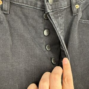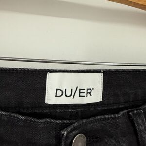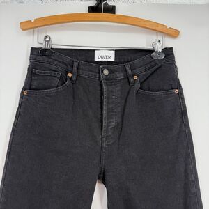 DUER Jeans Womens 29x27 Midweight Denim High Rise Straight Aged Black Button Fly
