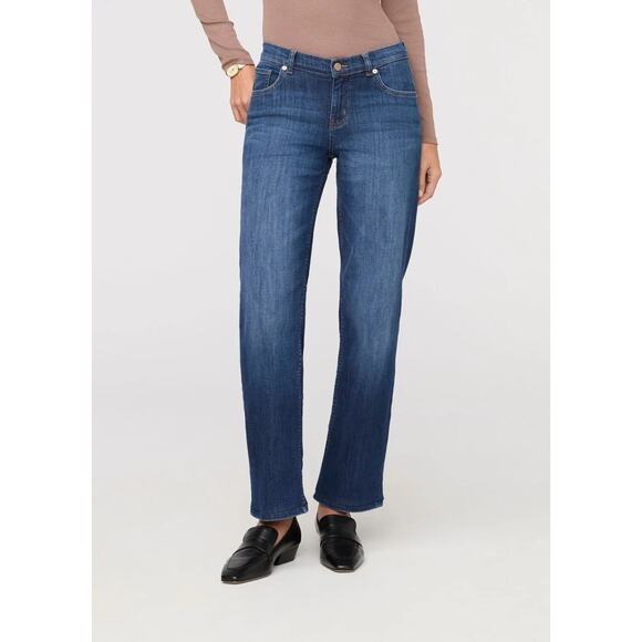 A modern straight-leg jean with a classic mid rise and relaxed ease through the hip and thigh. Made from our signature Performance Denim, this style blends the look and feel of premium denim with added stretch for all-day comfort and freedom to move. Designed for everyday wear with a laid-back, flattering fit.