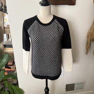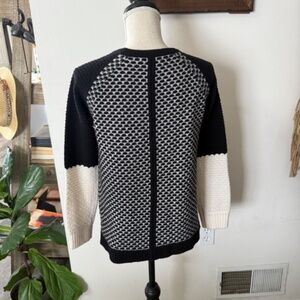 DUFFY Women's Black & Ivory Contrasting Arms Soft Wool Blend Sweater Sz S