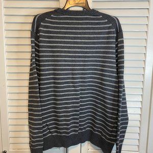 Gray striped cotton blend crew neck sweater, quality craftsmanship, warm, comfy and tough