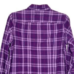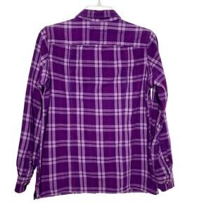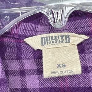 DULUTH TRADING CO Plaid Button-Up Long Sleeve Shirt Flannel Cotton Purple Sz XS