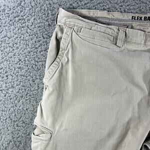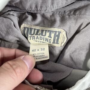 DULUTH TRADING FLEX BALLROOM KHAKIS PANTS MENS 42x32 TAN BEIGE FITS 42x31 POCKET