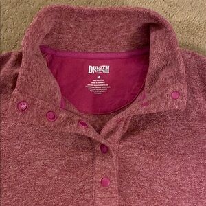 Duluth Trading frost lake fleece pullover. Very lightly worn and clean with no stains. Anti-pilling 100% polyester material. Lightweight fleece. Thumb holes at the cuffs for no bunch layering. Chin warming stand up collar. Figure flattering cut. Please see photos for measurements. Non smoking non pet home.