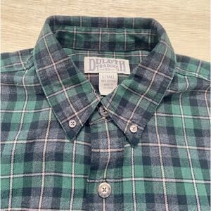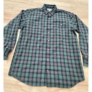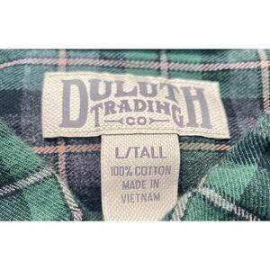 DULUTH TRADING Flannel Plaid Long Sleeve Shirt Collared Men's Green SIZE L/TALL