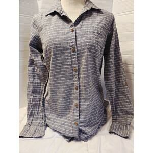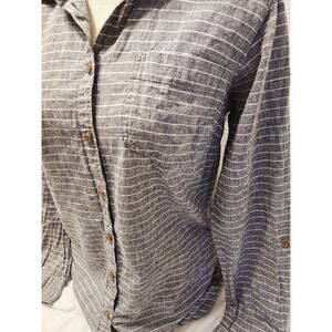 DULUTH TRADING M Organic Cotton Hemp Gray Striped Tunic Shirt Pockets Quite Lux