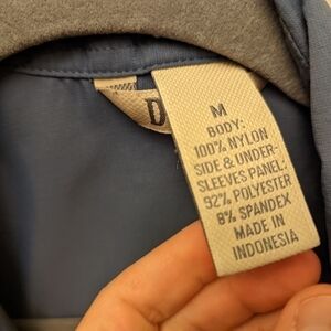 This is a 100% nylon work shirt. Great for outdoor tasks. Long shirt with pockets.