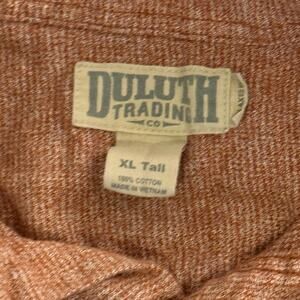 Get ready for the great outdoors with this fantastic Duluth Trading Co. flannel shirt! This men's size XL Tall shirt is perfect for hiking, camping, or just relaxing in style. The vibrant orange color adds a pop of color to your wardrobe.