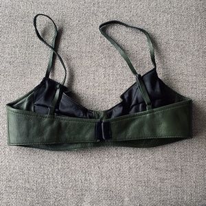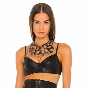 Sleek black leather bralette. Strappy design. Perfect for layering.
