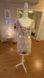 Elegant mini dress with intricate floral lace. Features white and purple hues. Scalloped neckline and short sleeves. Perfect for special occasions.