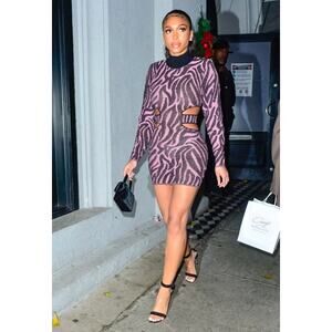 DUNDAS X Revolve Jett Jacquard Dress Size Medium Purple Zebra Sweater Mini