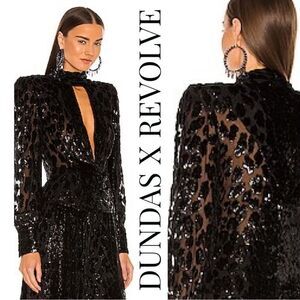 DUNDAS x REVOLVE Blouse Hendrix Top Black Metallic Keyhole Cutout XS Whimsigoth