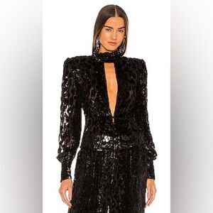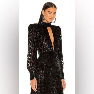 DUNDAS x REVOLVE Hendrix Top in Black Tinsel Keyhole Cutout Balloon Sleeve XS