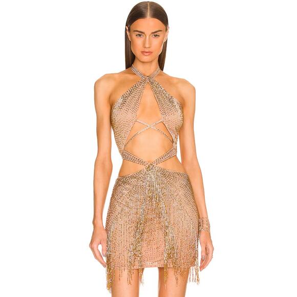 DUNDAS x REVOLVE Cher Embellished Mini Dress in Gold NWT Size XS