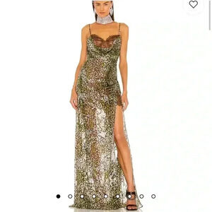 DUNDAS x REVOLVE Williamsburg Maxi Dress in Green Leopard Size L