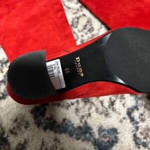 DUNE LONDON Selsie Red Suede Tall 70’s Block Heel Boots