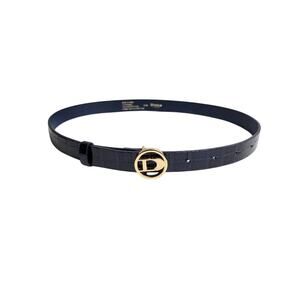 DUNE London Belt Women's Croc Print Belt Navy Blue Sz Small Gold Logo