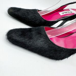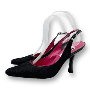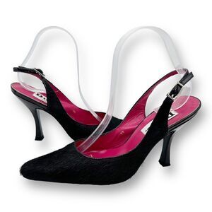 DUNE LONDON Black Calf’s Hair Pointed Toe Slingback Sculptural Heels Sz 8.5 US