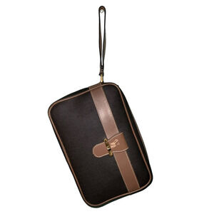 DUNHILL Clutch Travel Bag Charcoal Gray Brown Leather Clutch