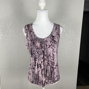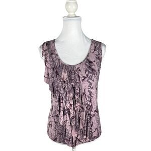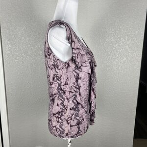 DUNIA Size S Purple Sleeveless Top Ruffle Watercolor Dye Soft Tank